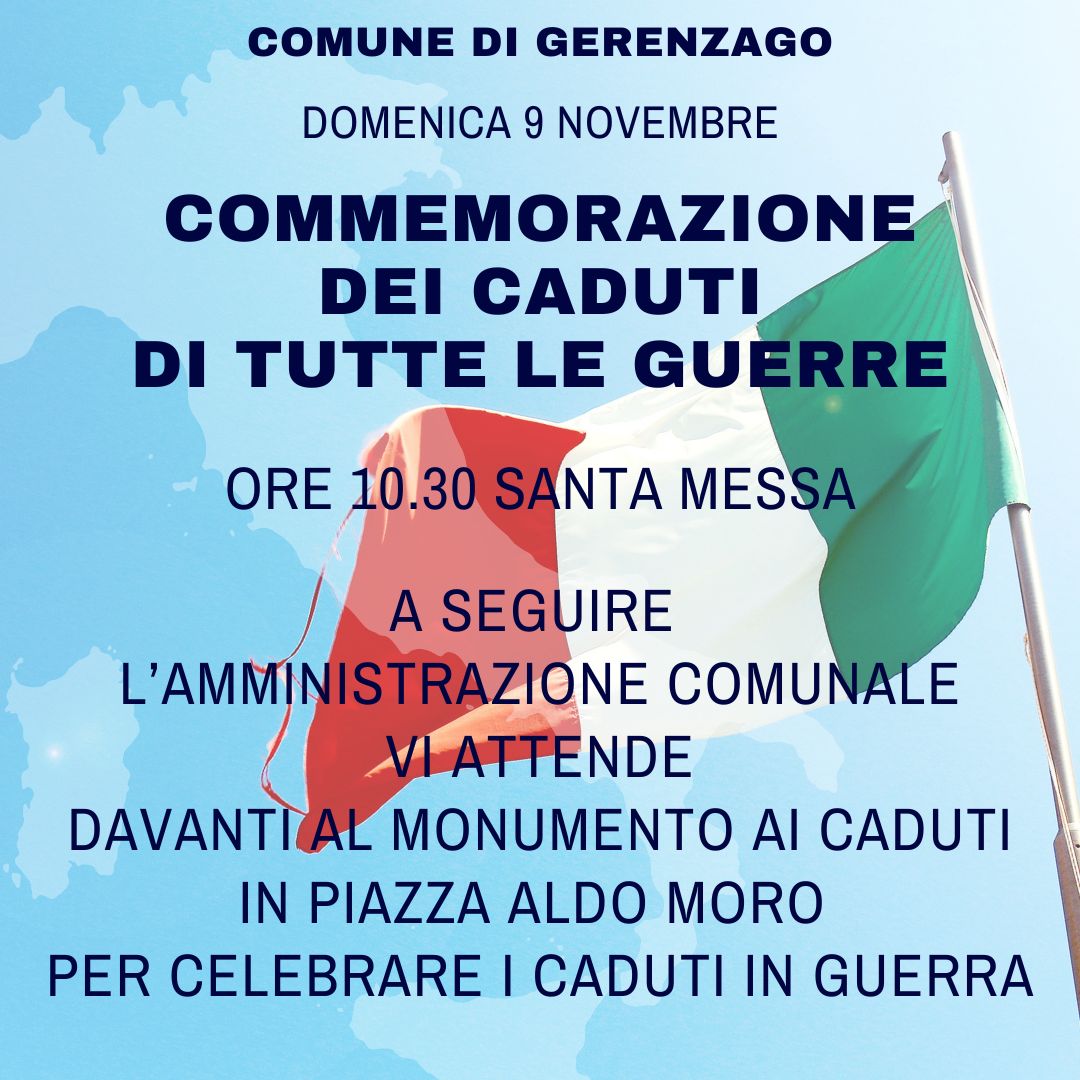 Alle ore 10:30 si terrà la Santa Messa, a seguire la celebrazione dei Caduti di tutte le Guerre davanti al monumento dei Caduti in Piazza Aldo Moro.